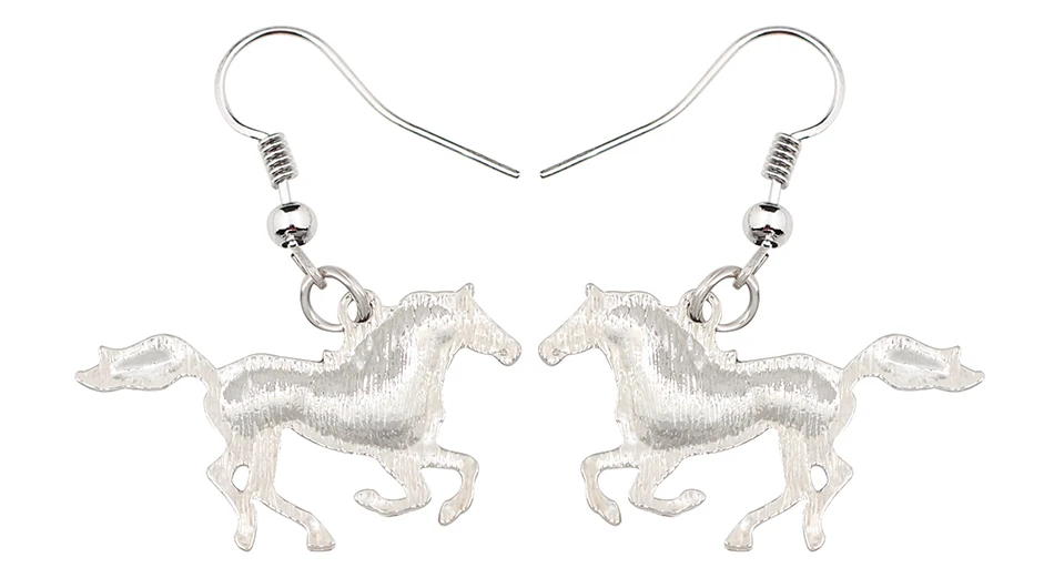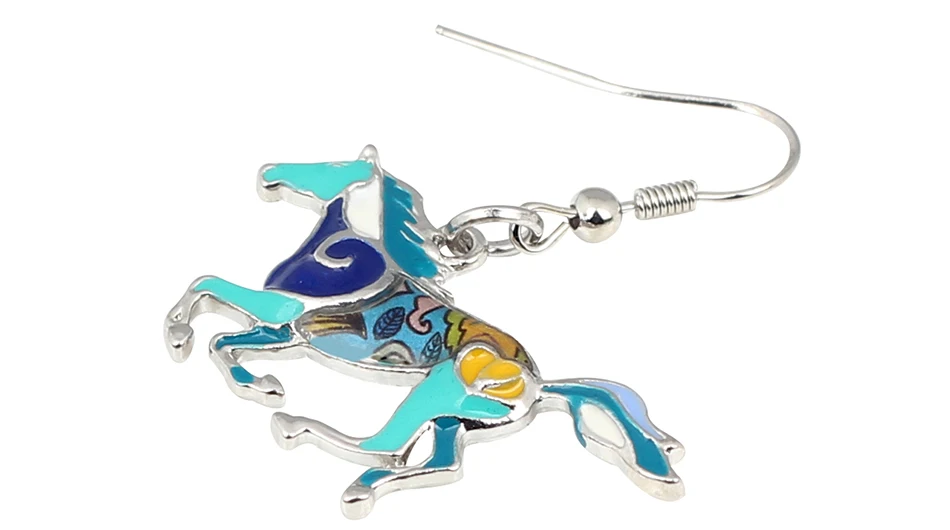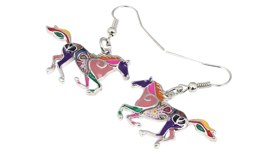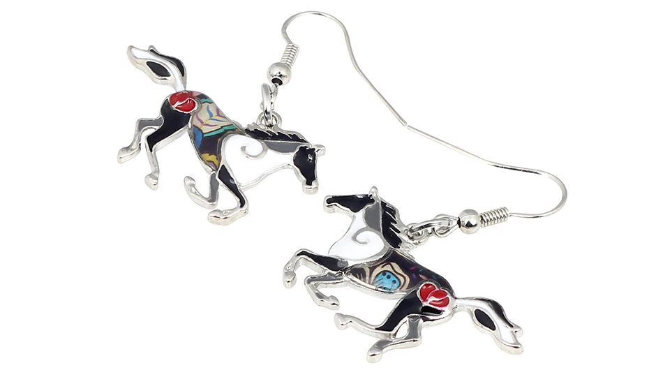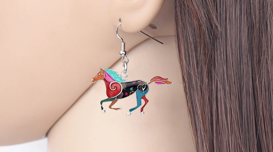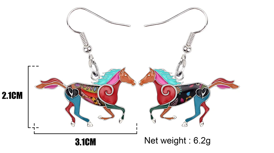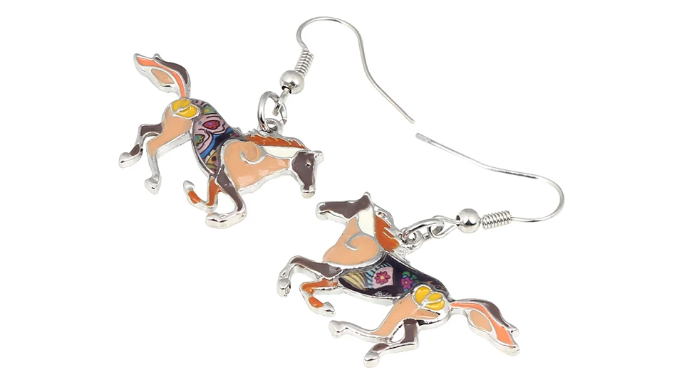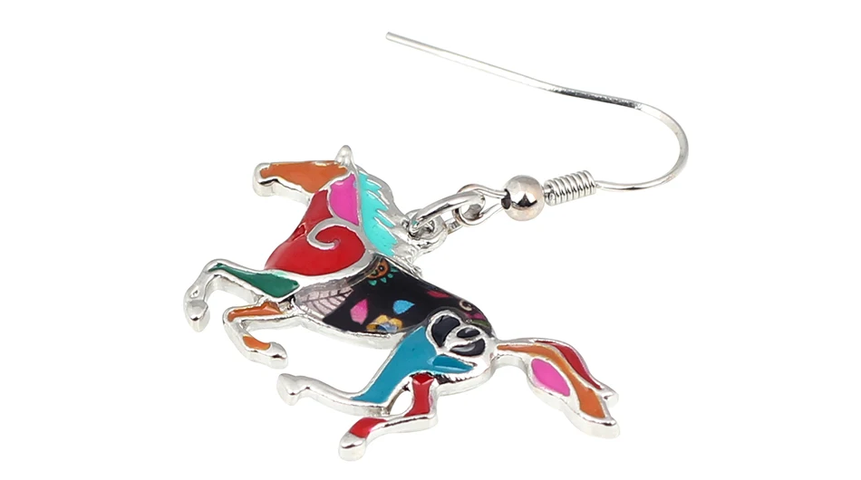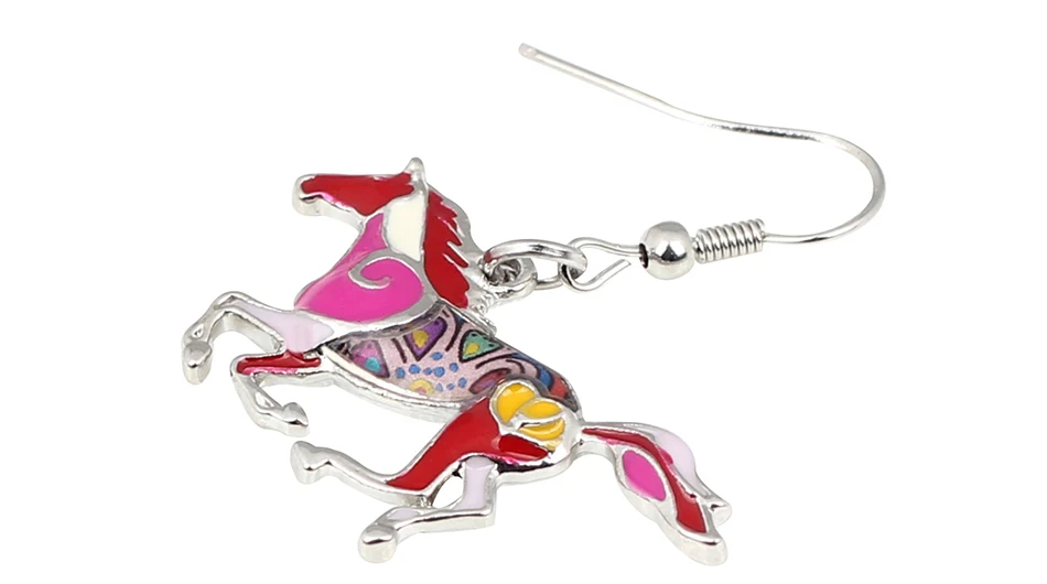 Bonsny Enamel Alloy Floral Running Horse Earrings Drop Dangle Big Hot Fashion Animal Jewelry For Women Girls Teen Gift Wholesale