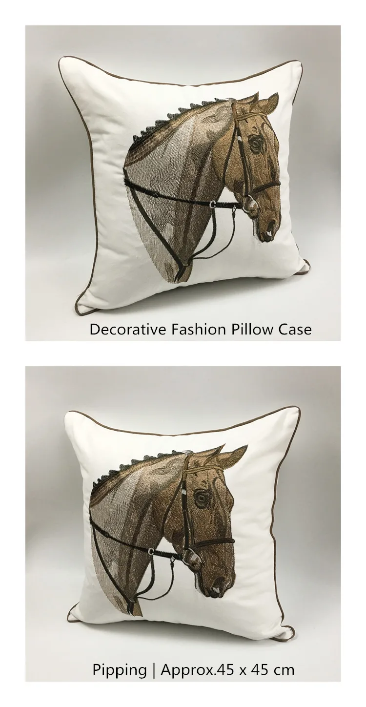 High Quality Embroidery Horse Designer Pillow Cover Sofa Cushion Cover Canvas Home Bed Decorative Case 45 x 45cm Sell by Piece