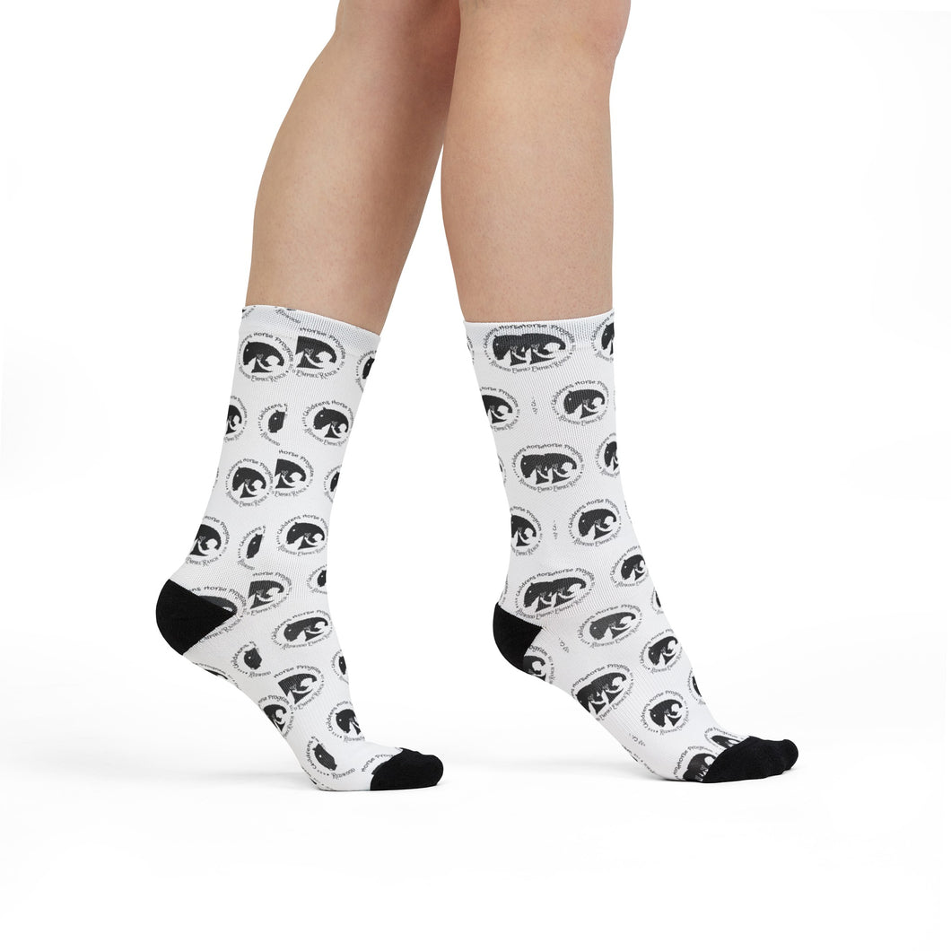 Comfort and style is the name of the game for these sublimation crew socks. Designed to fit universally from women's size 5 US up to men's size 13 US, these socks strike the perfect balance of durability and flexibility thanks to their fabric blend. (60% polyester, 10% acrylic, 25% nylon, 5% spandex) All socks come with stylish black heel and toe accents.